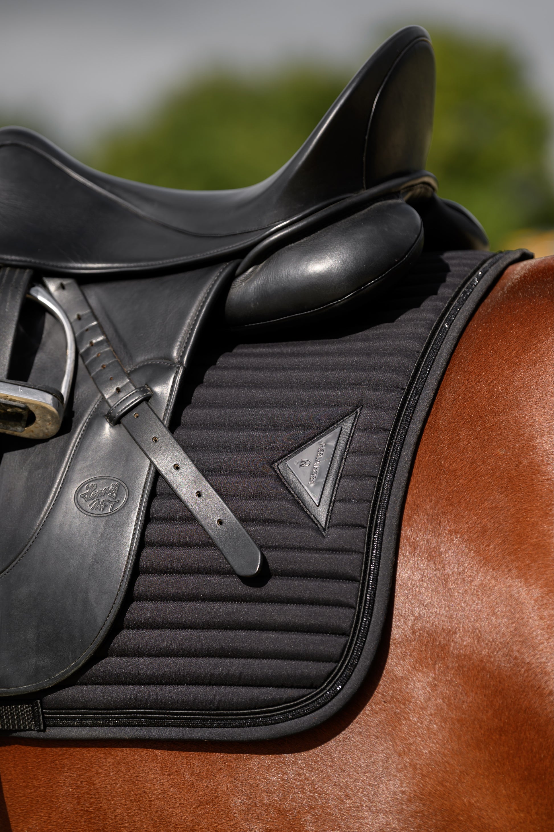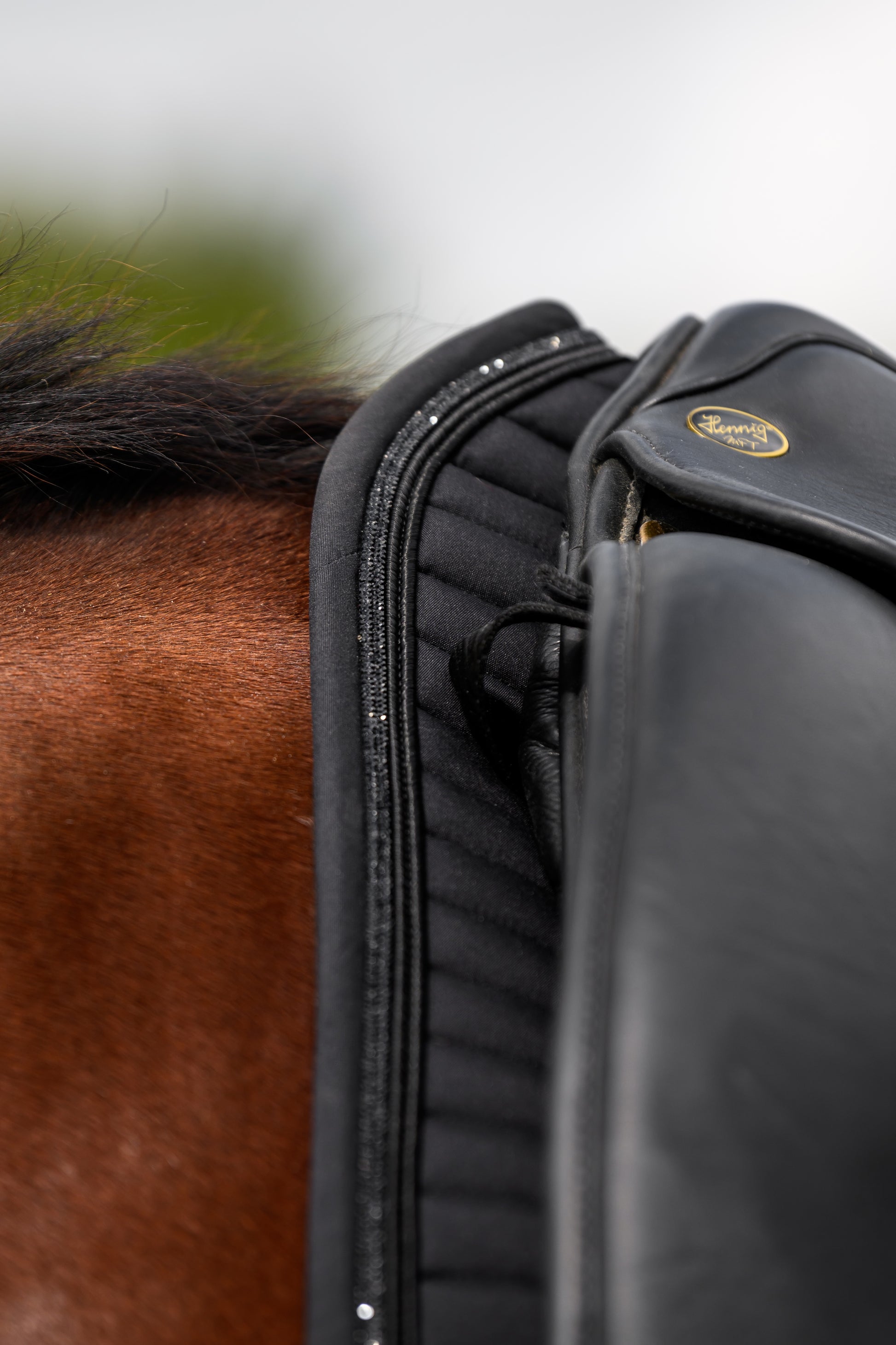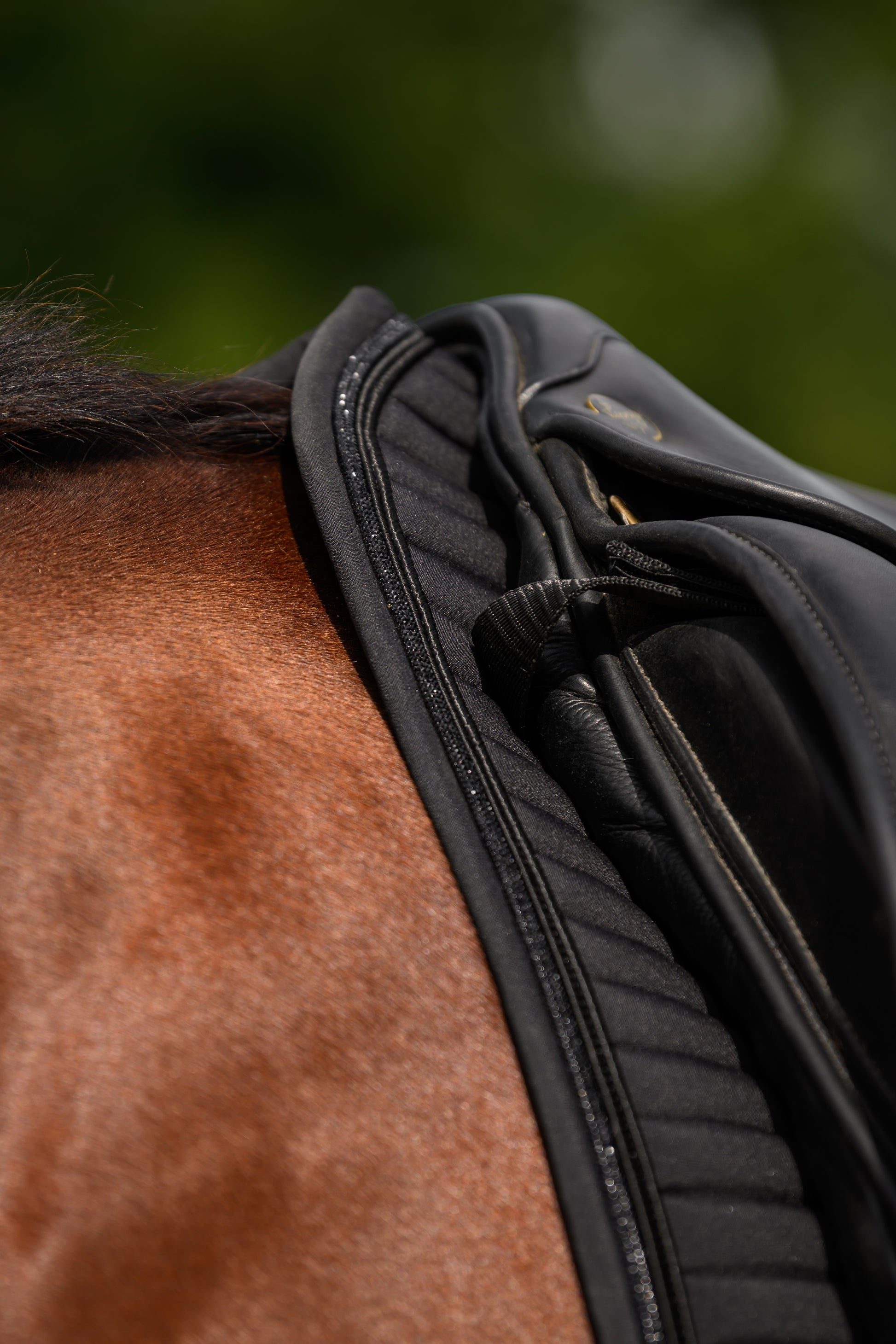 Diese stilvolle Schabracke vereint höchsten Komfort mit einem Hauch von Glamour. Die anatomische Form sorgt für optimale Widerristfreiheit und eine ideale Passform unter dem Sattel.
