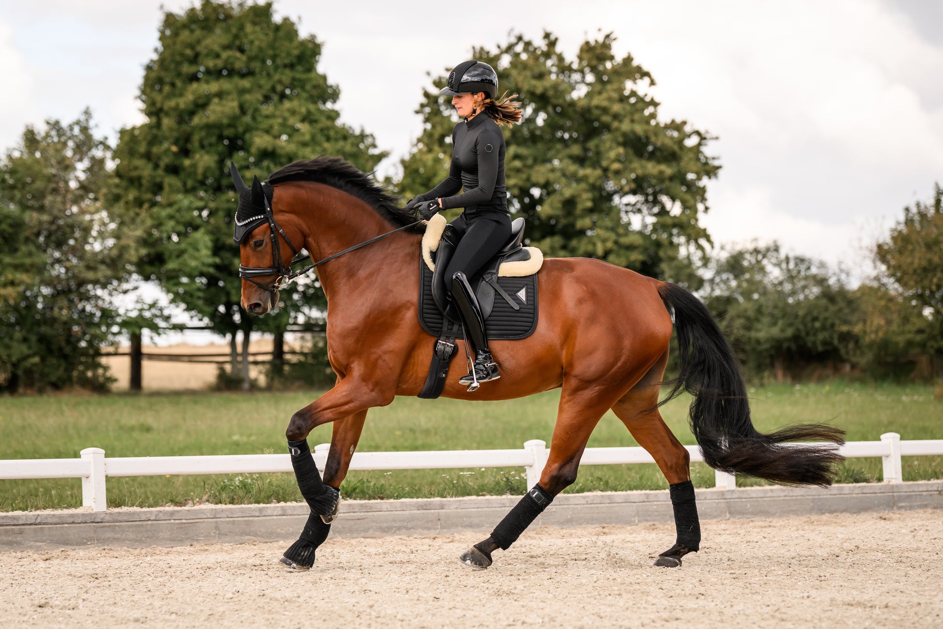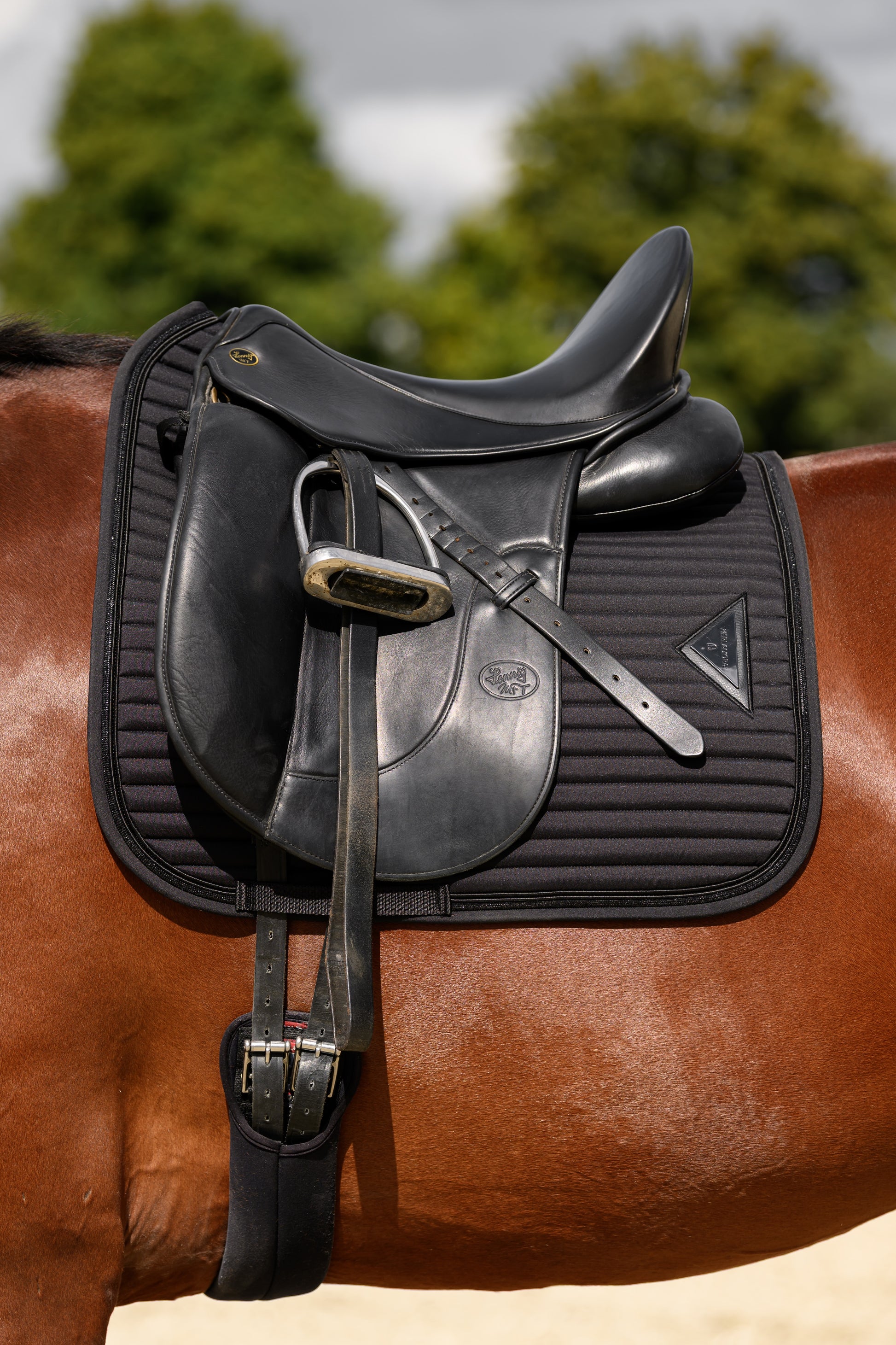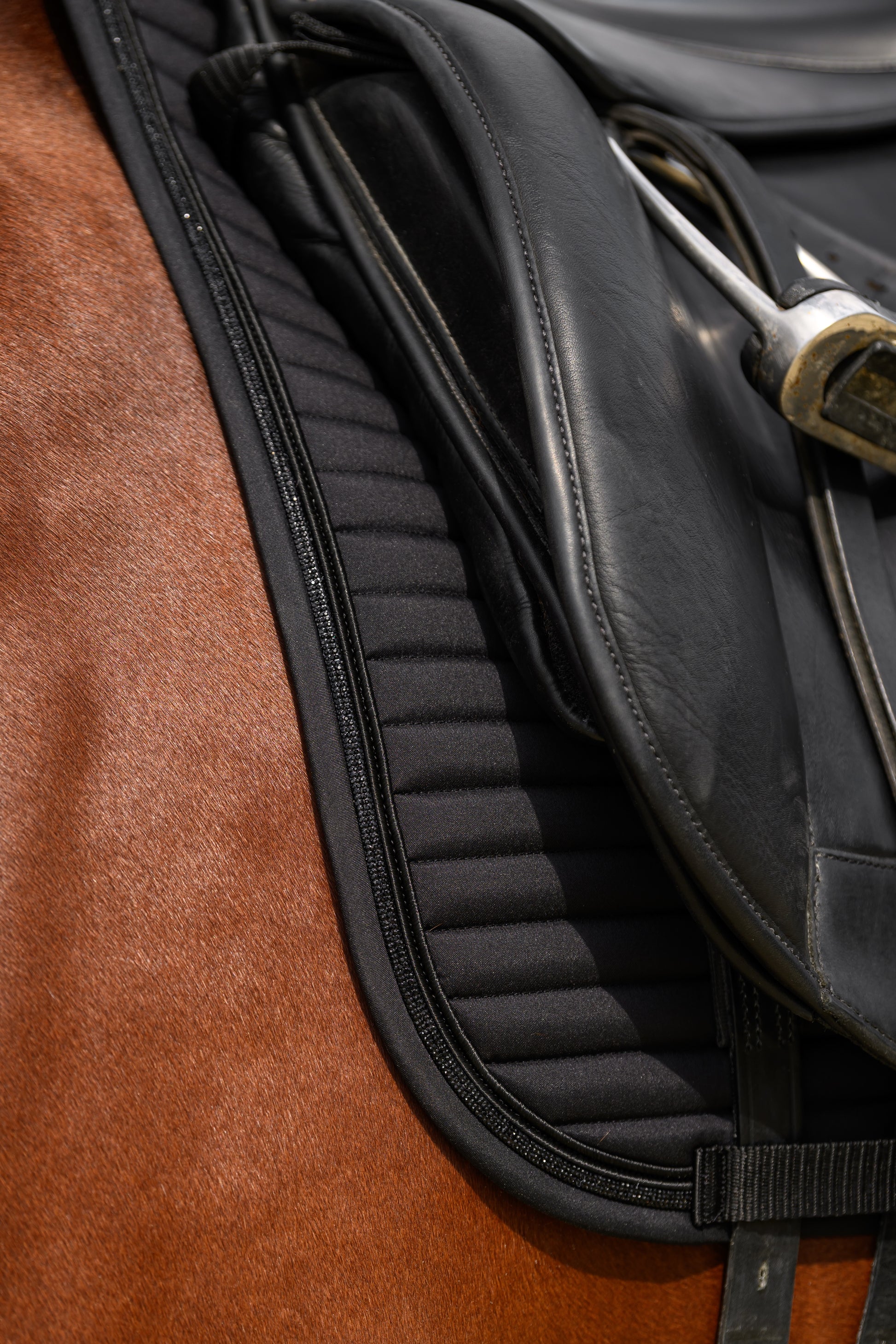 Diese stilvolle Schabracke vereint höchsten Komfort mit einem Hauch von Glamour. Die anatomische Form sorgt für optimale Widerristfreiheit und eine ideale Passform unter dem Sattel.