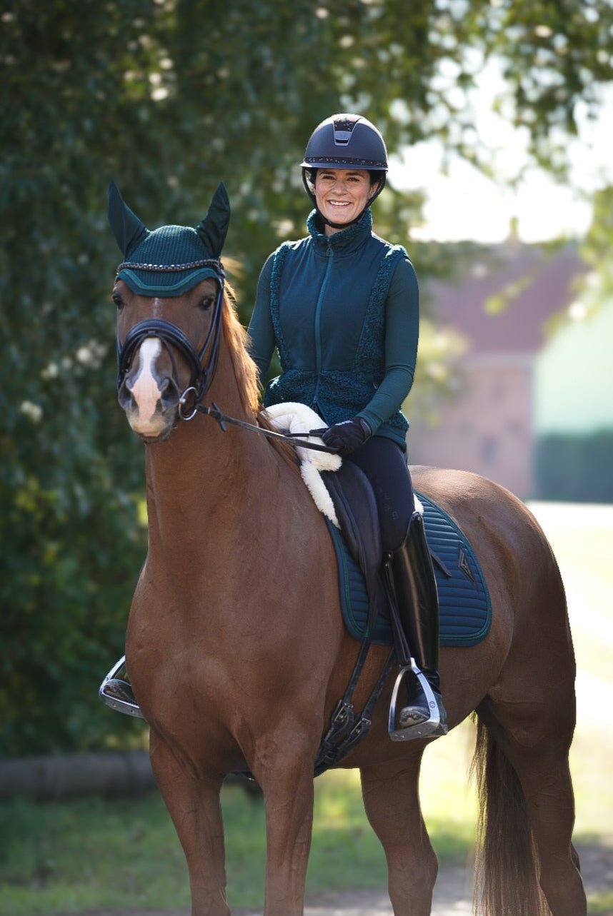 Diese stilvolle Schabracke vereint höchsten Komfort mit einem Hauch von Glamour. Die anatomische Form sorgt für optimale Widerristfreiheit und eine ideale Passform unter dem Sattel.